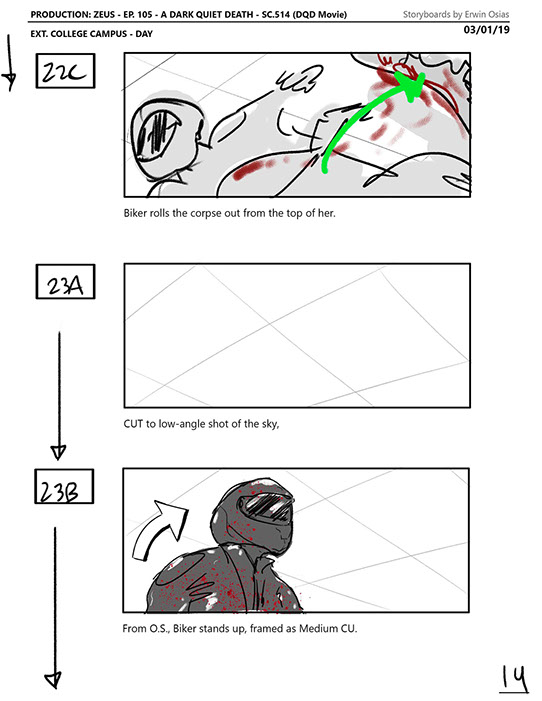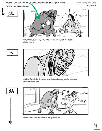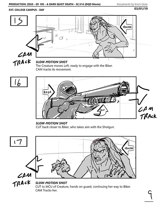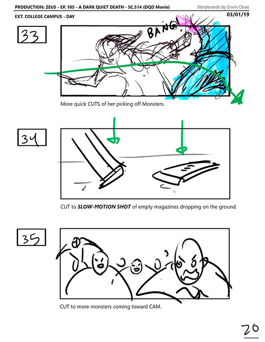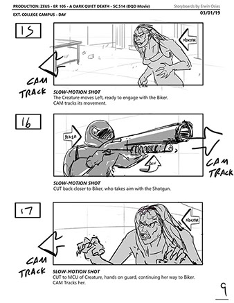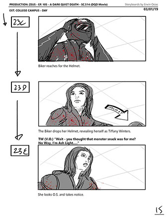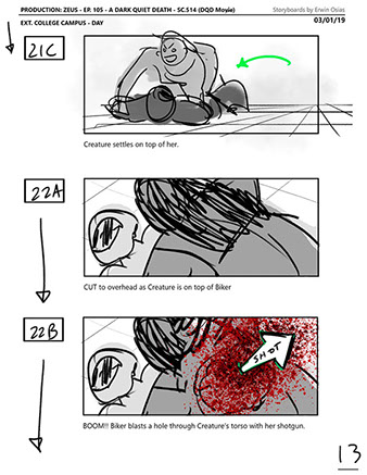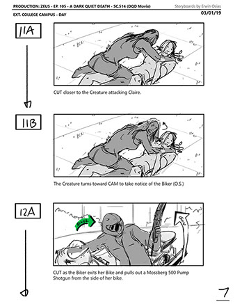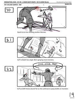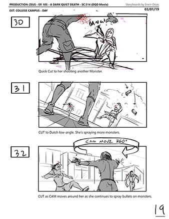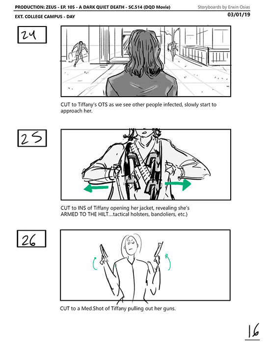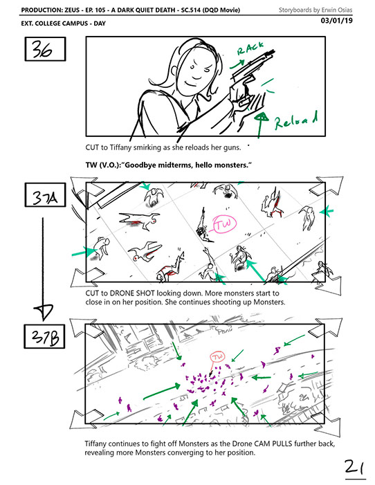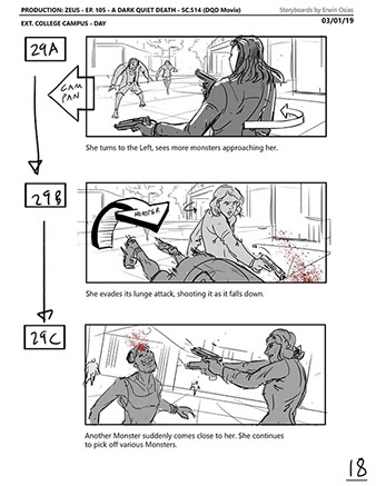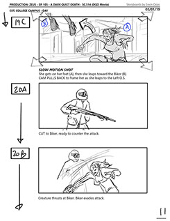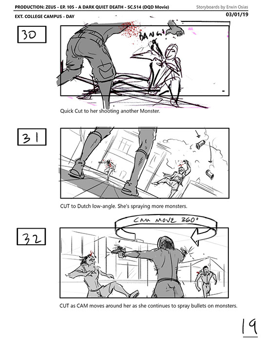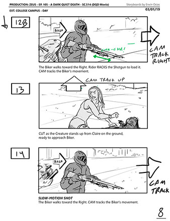 Action sequence for the movie trailer of the episode's title video game "Dark Quiet Death"